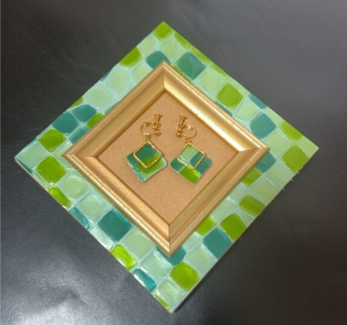 牛革に逆型押しと言う技法にエナメルを流した美しいステンドグラスレザーの額縁。